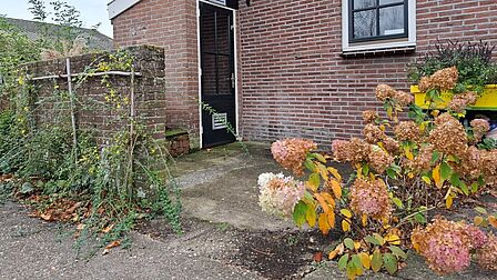 Een prachtig bloembed, een tuinpaadje van houtsnippers én kleurig geveltuintje. 'Weg met die tegels' vonden Erica en Jan